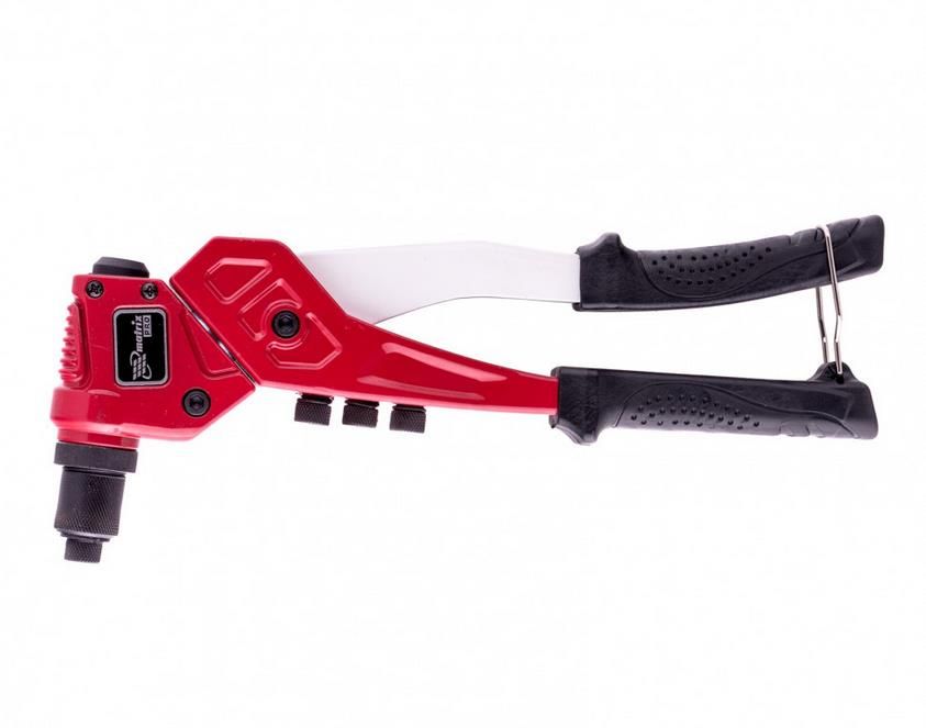 Заклепочник литой, поворотный, 290 мм, 0-360 заклепки 2,4-3,2-4,0-4,8 мм/, PRO MATRIX 40547 предназначен для скрепления металлических листов с помощью вытяжных заклепок.