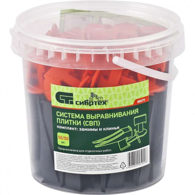 Клин СИБРТЕХ 88050 является составляющим элементом системы выравнивания плитки СВП. Система состоит из зажима и клина. С помощью системы СВП можно положить плитку на полу и стенах из любого материала толщиной от 6 до 12 мм. Основа позволяет зажать углы четырех плиток одновременно и сформировать ровный шов. Клинья легко удаляются после высыхания клея и могут быть использованы несколько раз. Количество клиньев в упаковке — 50 шт. Упаковка — пакет ПЭНД. |