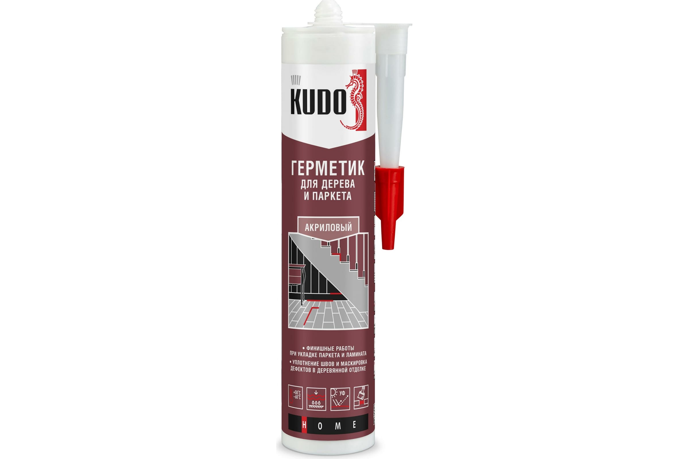 Высококачественный однокомпонентный акриловый пластоэластичный герметик KUDO предназначен для герметизации и затирки стыков при укладке паркета, ламината и пробковых покрытий, заполнения щелей при монтаже плинтусов, наличников, деревянных оконных рам и подоконников. Применяется для уплотнения соединительных швов при отделке вагонкой и монтаже перегородок.