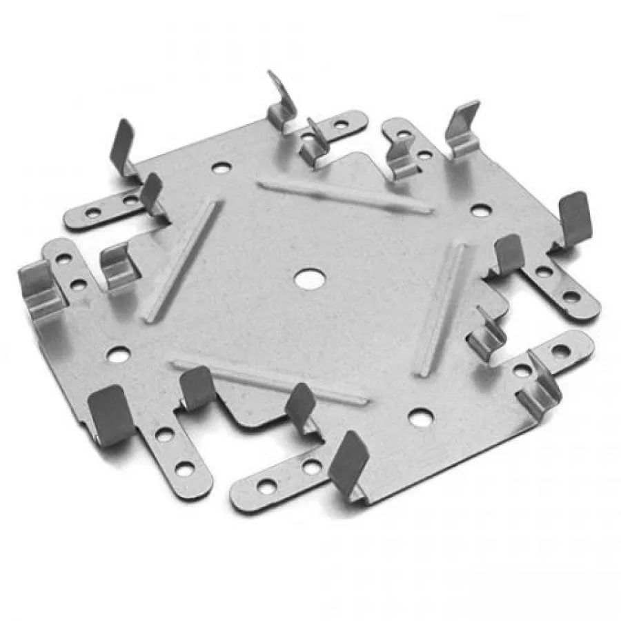 Одноуровневый соединитель «краб» предназначен для крестообразного соединения потолочных конструкций на одном уровне и во взаимно перпендикулярных направлениях. Он изготовлен из высококачественной, устойчивой к коррозии и другим неблагоприятным образованиям оцинкованной стали, весит всего 0,09 кг. Элемент надёжно соединяется с профилем при помощи сгибающихся фиксирующих «лепестков», а также саморезов по металлу, используется при монтаже каркаса из профиля ПП 60х27 мм. Стальной соединитель размером 148х148 мм имеет толщину 0,55 мм, незаменим в каркасе подвесных потолков из гипсокартона и в процессе соединения отрезков несущих потолочных профилей.