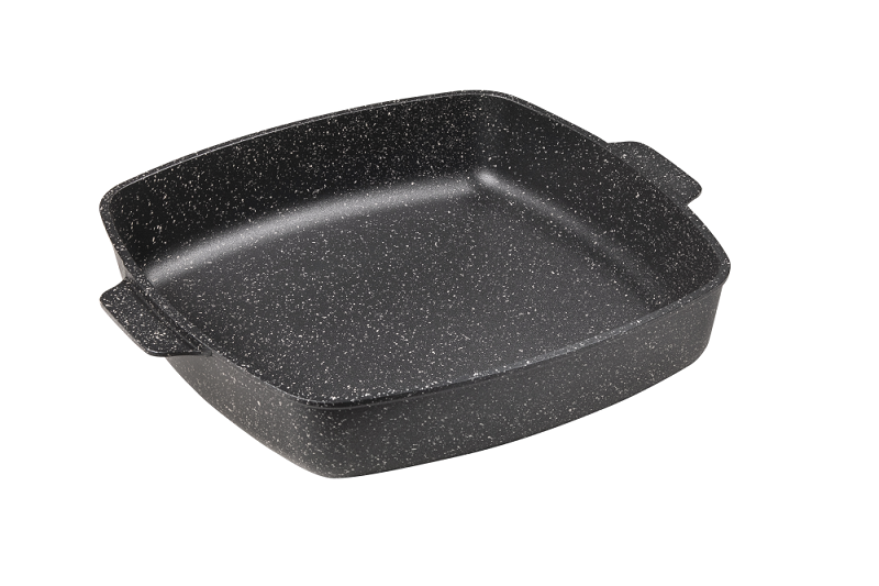 Дополнительный слой с мраморным эффектом увеличивает износостойкость и создаёт оригинальный оттенок чёрного мрамора. Литой пищевой алюминий не имеет канцерогенных веществ и посторонних запахов. Толстые стенки и дно обеспечивают равномерное приготовление блюда. Посуда не деформируется при нагревании. Антипригарное покрытие на водной основе без вредных химических соединений: экологично и безопасно. Мелкие царапины не влияют на безопасность антипригарного покрытия. На противнях можно готовить без масла, их легко мыть.